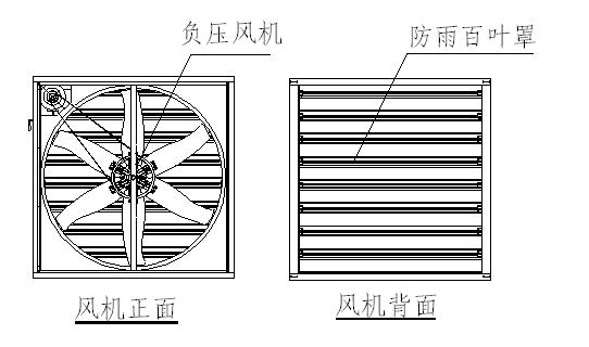 6、由于風機是低壓型的(靜壓、動壓均小),故不能在百葉窗負壓風機出風口用加長管道的辦法來遠距離送風。